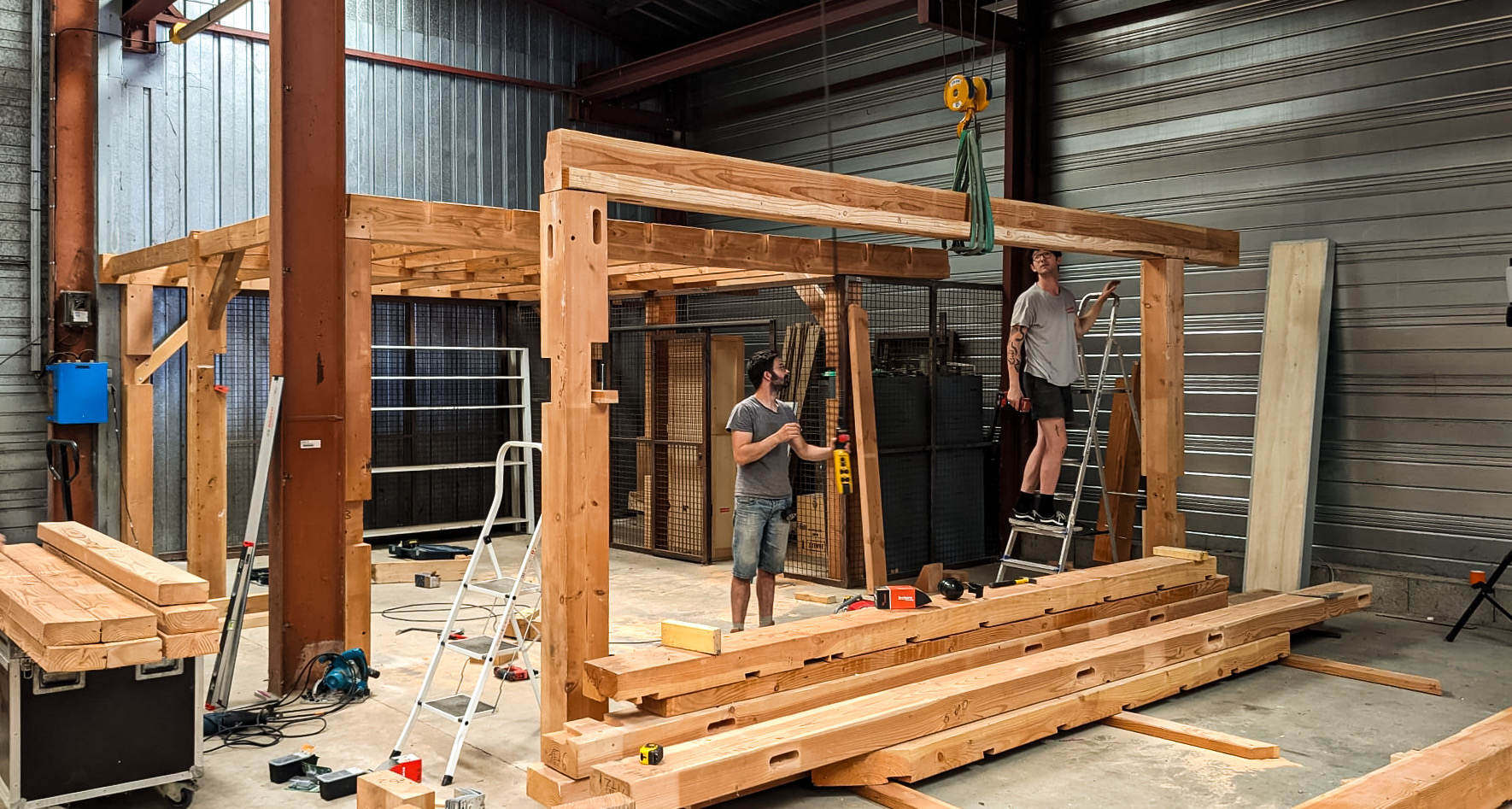 Ce nouvel atelier change la donne : surface plus vaste, circulation plus fluide, zones de travail mieux définies, et surtout, des machines plus performantes et professionnelles. La proposition évolue : production artistique, design, encadrement, menuiserie poussée, fabrication de décors, stockage, montage… et un accès pour les poids lourds !
