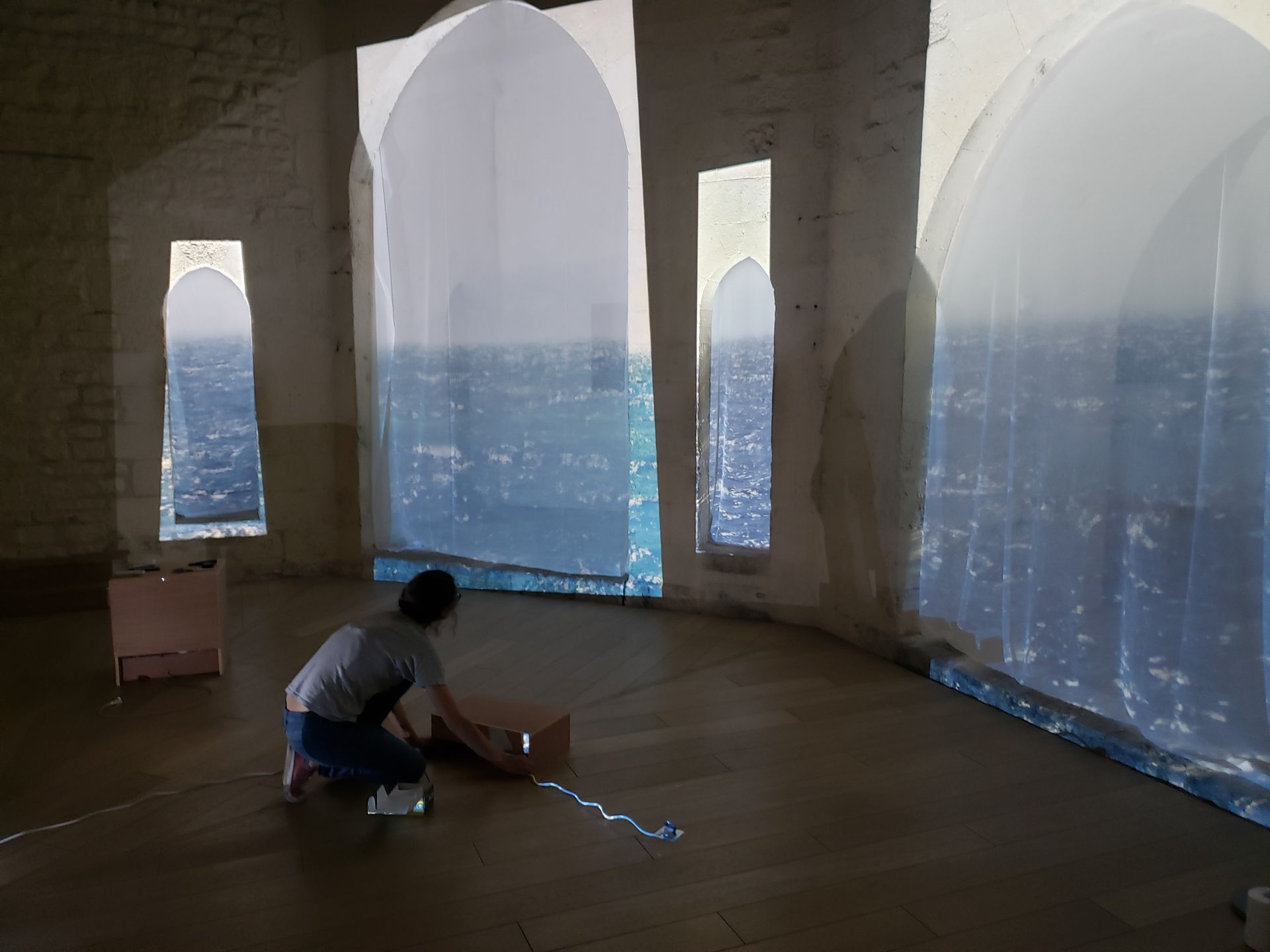 Montage exposition Tania Mouraud - Tour de la Chaîne de la Rochelle